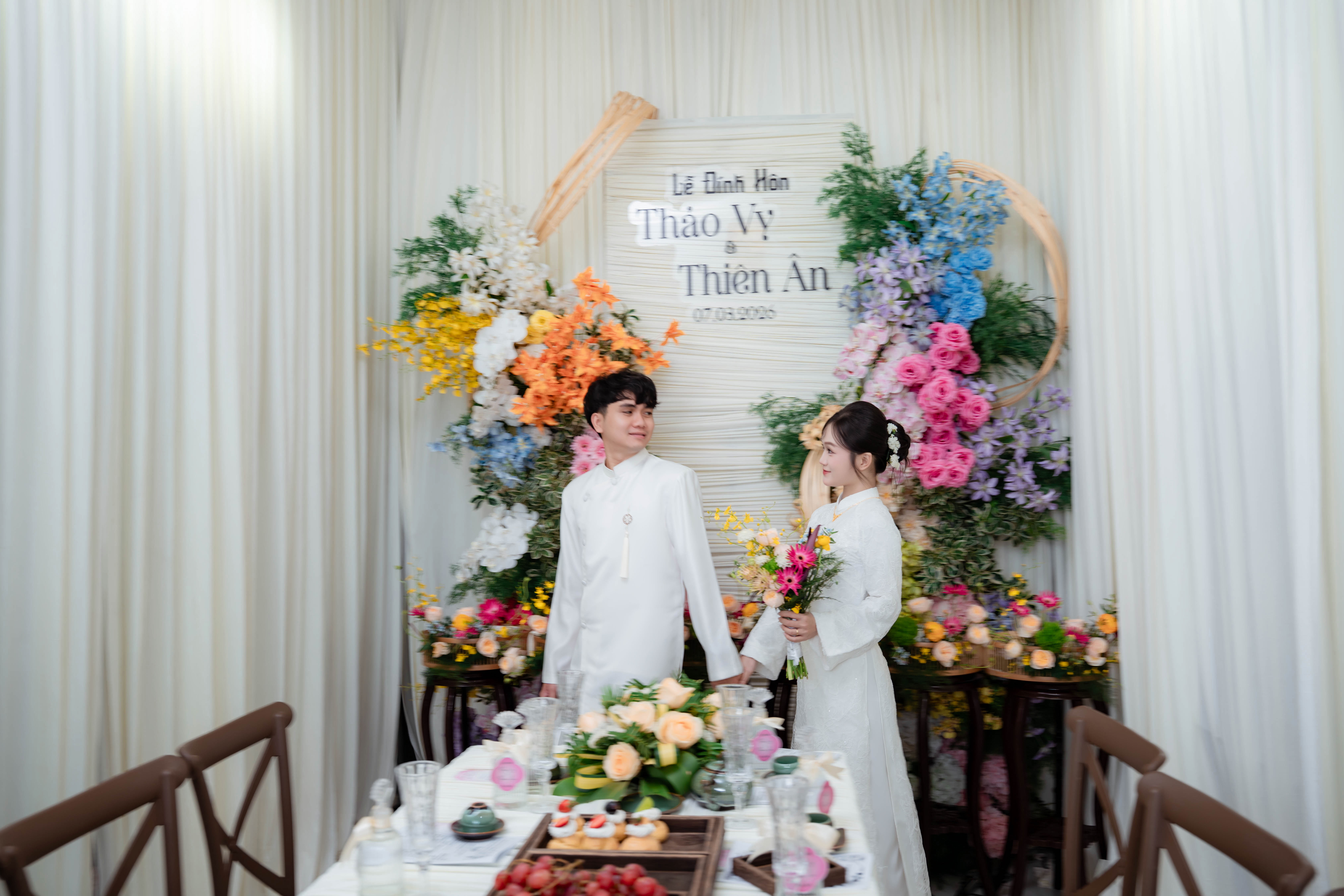 Trong không khí ấm cúng của ngày đính hôn, hai gia đình chính thức kết thân, trao nhau những lời chúc phúc chân thành nhất. Đây là bước khởi đầu cho một hành trình mới — hành trình cùng nhau xây dựng tổ ấm và vun đắp tình yêu bền vững.