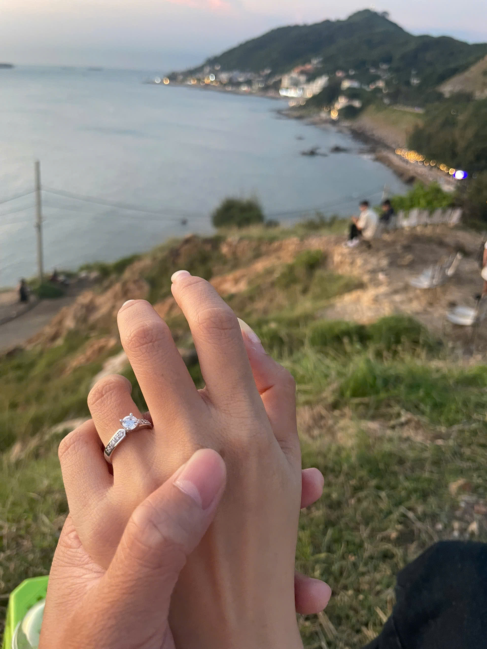 Một chiếc view từ trên cao nhìn xuống biển thật đẹp, giây phút ấy thật tuyệt vời khi trên tay Vy đã đeo chiếc nhẫn cầu hôn.